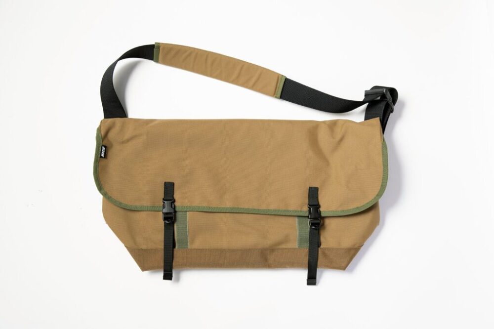 王道のメッセンジャーバッグは、大型サイズで、タフなコーデュラ500を仕様。内張りを施しているので防水性も◎。3万800円