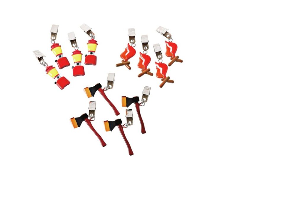 テーブルクロスの四隅にクリップすることで風の影響を抑えるテーブルクロスウェイトも、せっかくならアウトドアモチーフをチョイス。特にファミリーサイトなら子供たちも喜ぶポップな多色使いが正攻法だ。各1650円