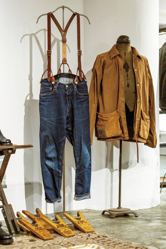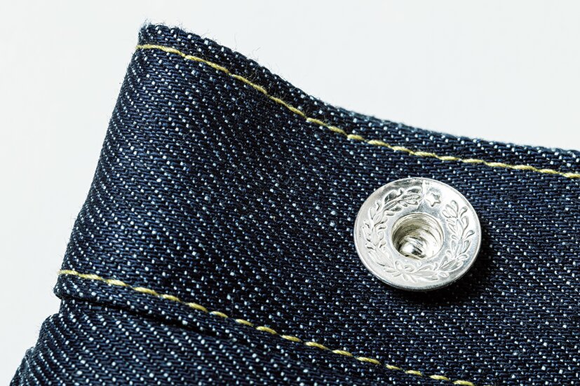 リーバイスのジャパンファクトリーとして認定されていた島根にあったデニム工場で生産される注目のブランド。こちらはリーバイス501XXの1933年をモチーフにした定番の5ポケットパンツに、本池秀夫さん特製のボタンを付けた。11万8800円