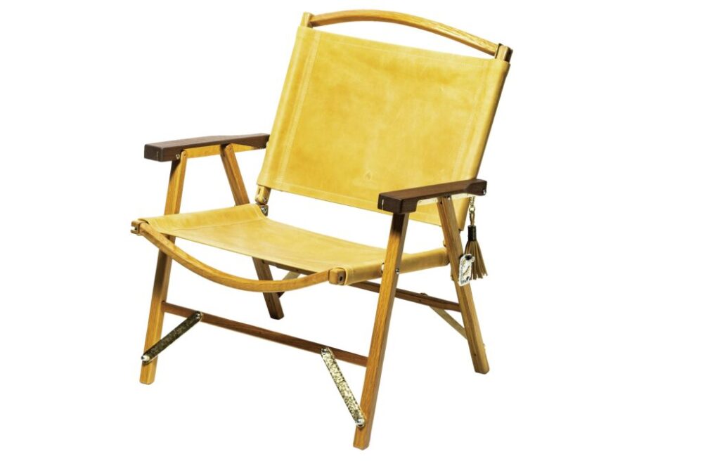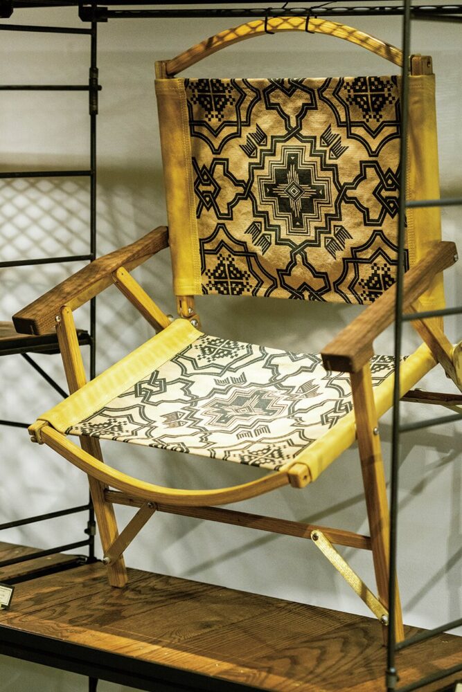 オールドマウンテンの人気作であるガラクダに張り替えたカーミットチェア。店頭にはまず並ばないアイテムのため、展示して実際に体感できるのだ。