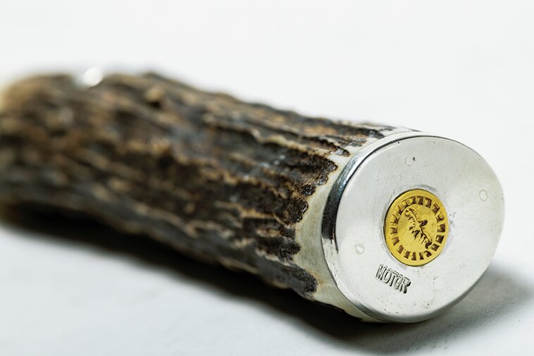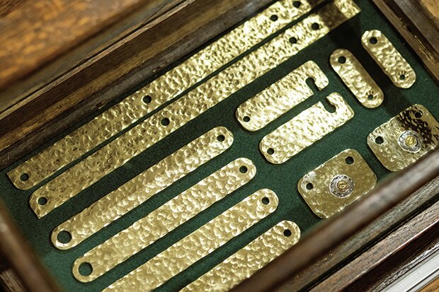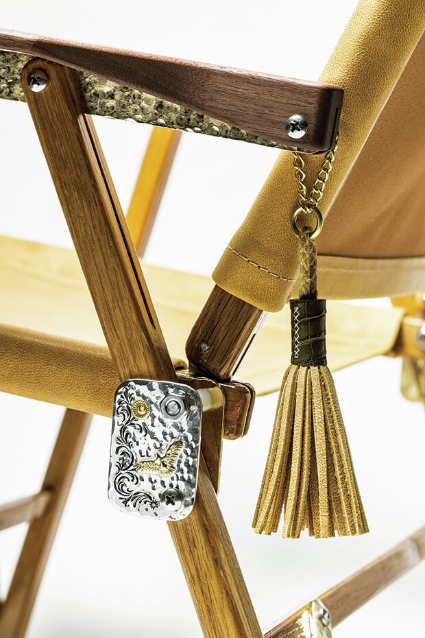 カーミットチェアのカスタムキットで知られるオールドマウンテン。このスペシャルモデルは、モトの本池秀夫さんに金属パーツ部分の彫金をオーダー。イーグルパーツ52万8000円、ツチメ5万7750円