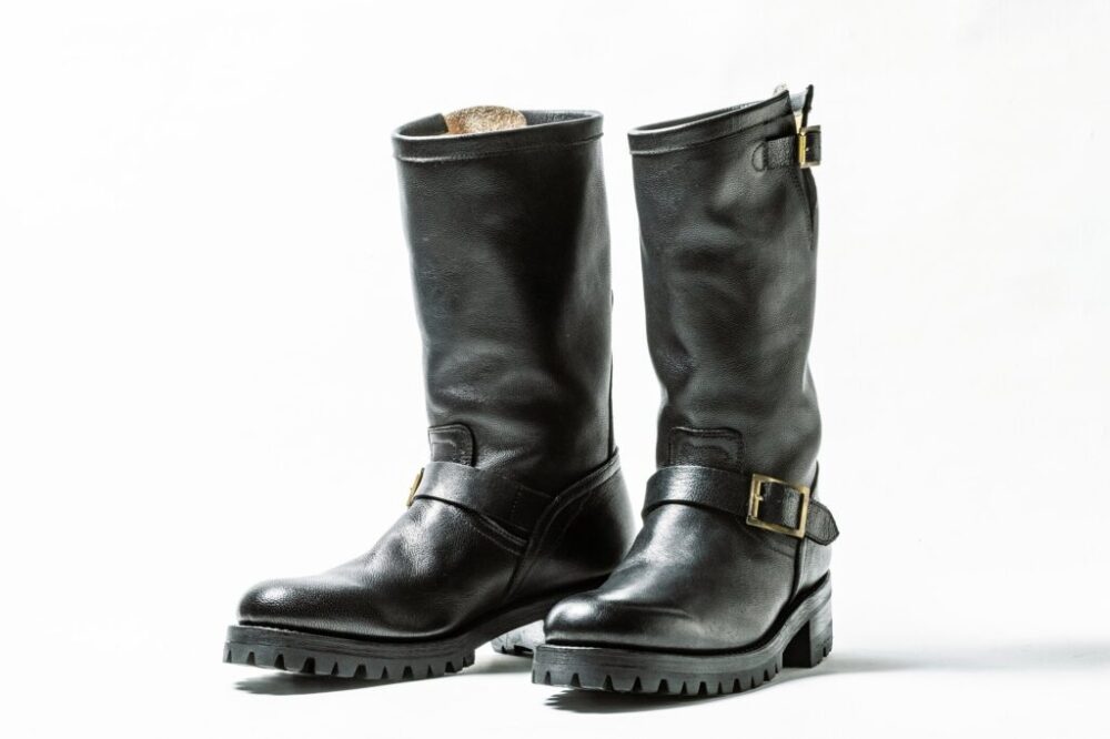 オールドマウンテンのアイコンとなっているキャメルレザーを落とし込んだモトのエンジニアブーツは、モールドのみのエクスクルーシブモデル。本来は牛革か、ホースハイドであるが、しなやかなラクダ革なので実に快適。14万3000円