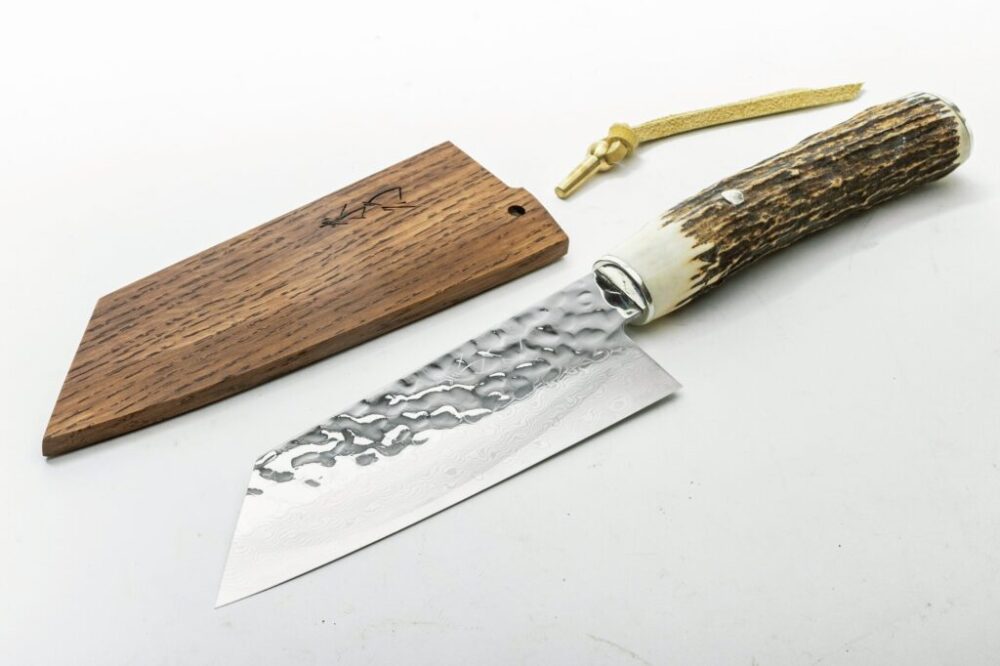 世界中のシェフがわざわざ訪れる名店、knife gallery 柴田 崇行さんの包丁をオールドマウンテン特別仕様にて製作。そしてエンドには、モトの本池秀夫のシルバーとゴールドを用いたハンドメイドパーツを取り付けたスペシャル。23万9800円