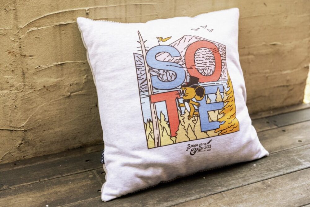 キャンプシーンでチルアウトする時はもちろんのこと、アウトドアフィールドへ向かう車内でも活躍してくれるクッション。このかわいらしいデザインは、SOTEというイベントでハーフトラックプロダクツとのコラボレーション。ジェリー鵜飼氏がデザインした。