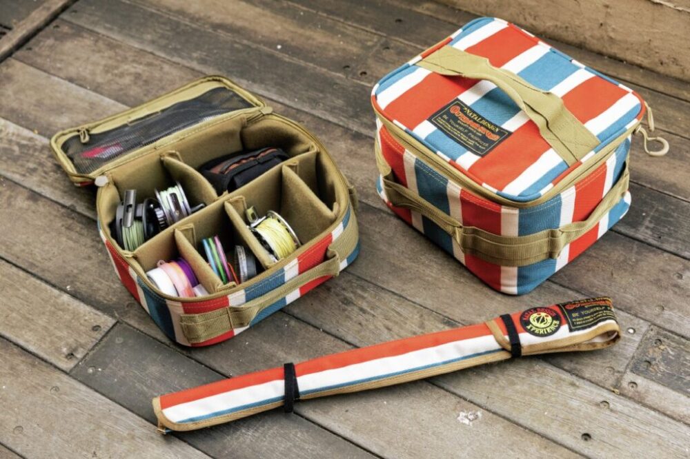 フィッシングに熱中している後藤さんが、もっとも信頼を置くカスタムロッドや修理などを行い工房であるブルーヘロンロッズとのコレボレーション。フライロッドでエンドには真鍮メダルが入る。バッグは、オレゴニアンキャンパーとコラボしたセミハードケース。