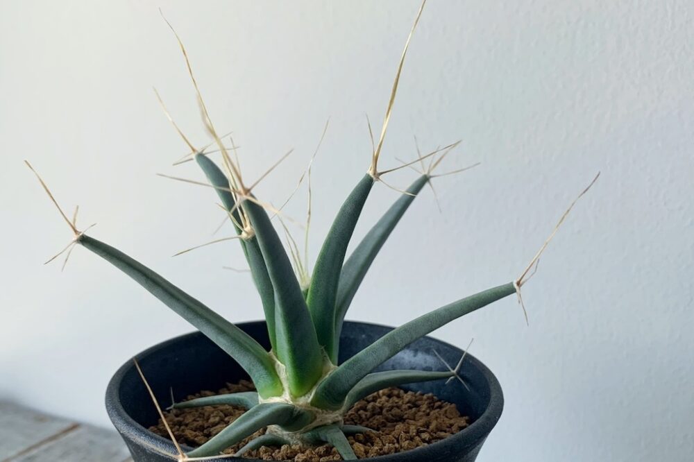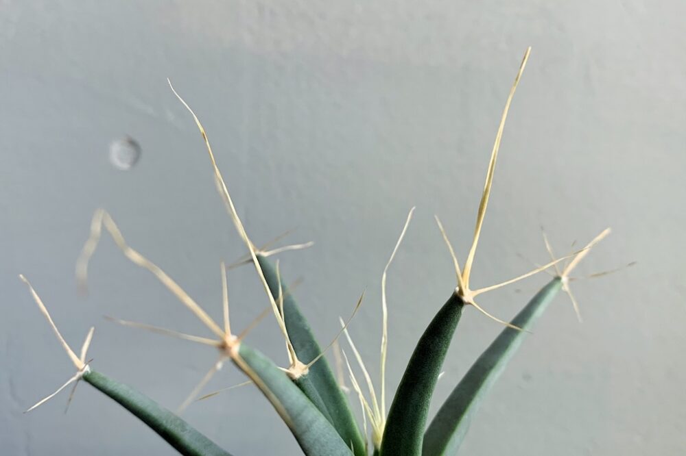その姿がアガベに似ていることから、現地では「アガベカクタス」とも呼ばれているそうです。ちなみに、アガベの葉のように見える棒状の部分は、サボテンの疣の部分が長く変化したものになります。