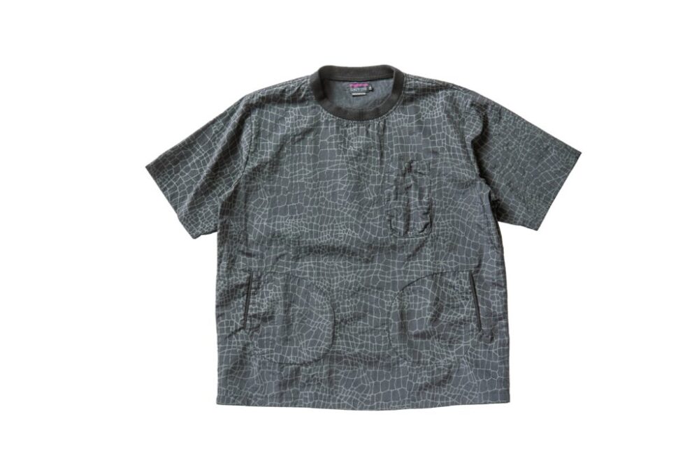 サプレックスナイロン生地に、’90年代のアウトドアシーンで人気だったスパイダー柄をリフレクタープリントで施した1枚。胸と両脇にポケットが備わっている。バーラップアウトフィッターとのダブルネーム。2万900円(ユナイト ナイン TEL03-5464-9976)