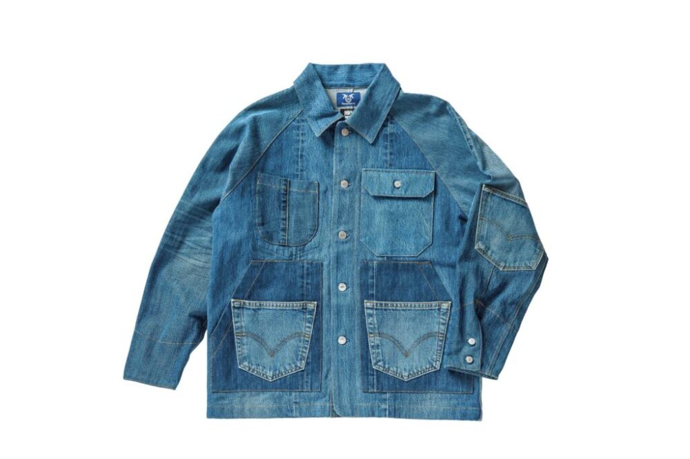 ユーズドデニムを贅沢に5本使用したカバーオール。ラグランスリーブにハンドウォーマーポケットを備える。パンツのポケットをエルボーパッチや内ポケットなどに使用。異なる色落ちも魅力。限定10着。8万8000円(ハミングバーズヒルショップ TEL03-6721-0189)
