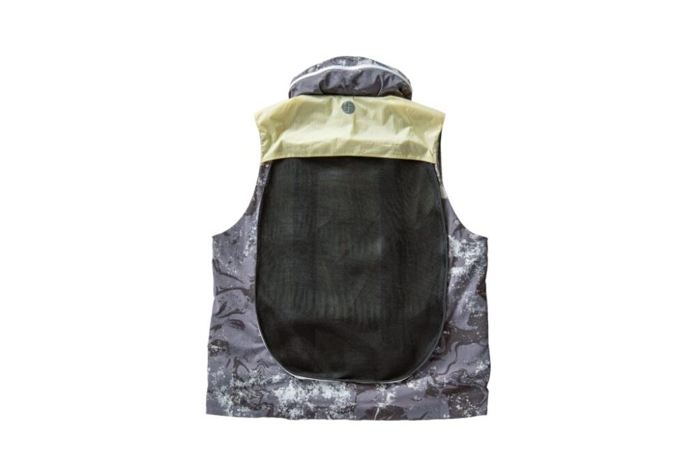 バックパックからベストにトランスフォームするコンボイベスト。軽量でストレッチ性の高いナイロンベースの撥水素材を使用。収納式フードも備え急な雨にも対応できるなどアイデア満載の多機能品。7万4800円(アルクフェニックス TEL03-6666-4321)