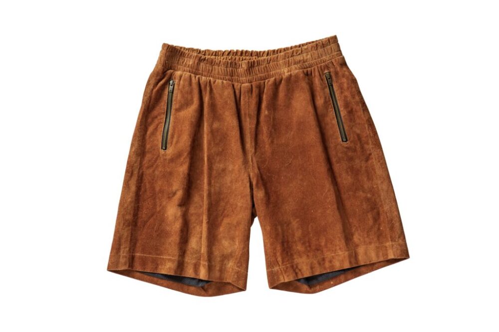 日本国産原皮を姫路のタンナーでなめした牛革を使ったショートパンツ。革は0.75㎜という薄さで裏地には吸汗速乾性のあるメッシュ生地だから夏でも快適に着用できる。レザー好きの夏の定番が登場! 5万2800円(エー ブティック TEL070-3223-7530)