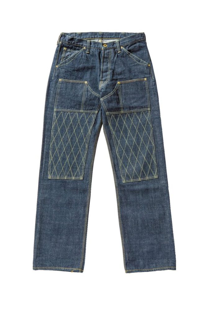 上部にポケットの付いたダイヤモンドステッチダブルニー、各所にトリプルステッチを用いたブランドを代表する1本。ワーク系やバイカー用だがキャンプなどアウトドアフィールドでも使い勝手抜群。2万6400円(トロフィージェネラルストア TEL03-6805-1348)