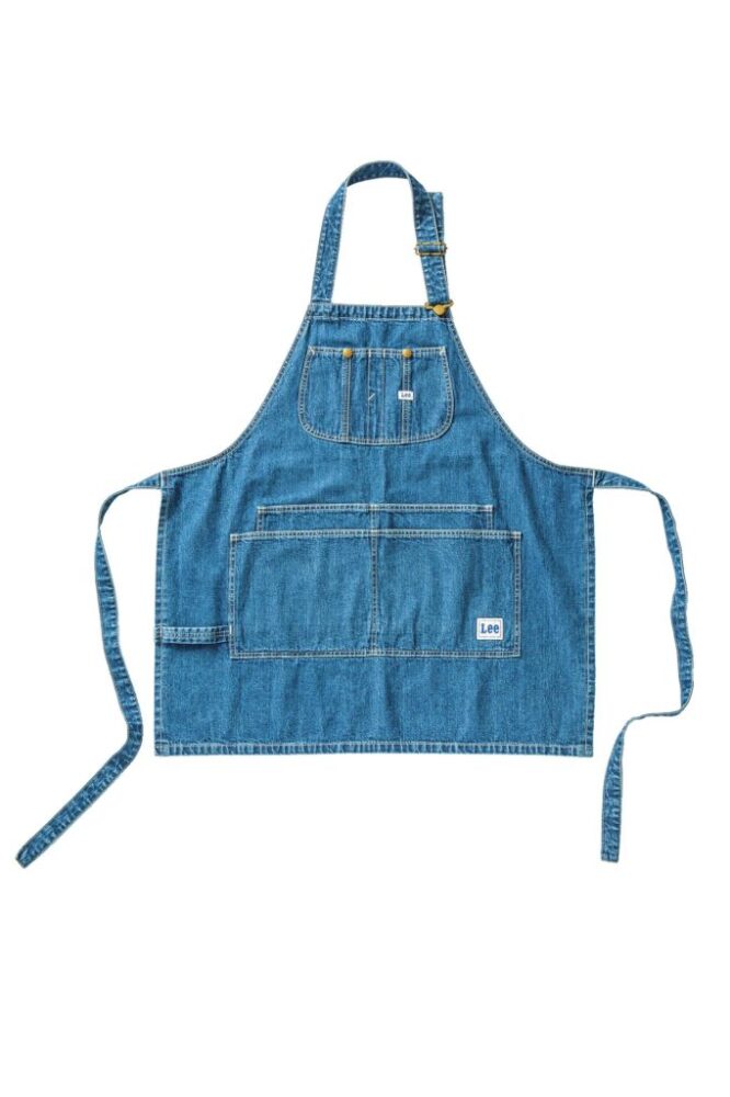 時代を超えて愛されるリーのオーバーオールのディテールを落とし込んだエプロン。もちろんデニム生地だから使うほどに経年変化が味わえるのも魅力のひとつ。7150円(エドウイン・カスタマーサービス TEL0120-008-503)