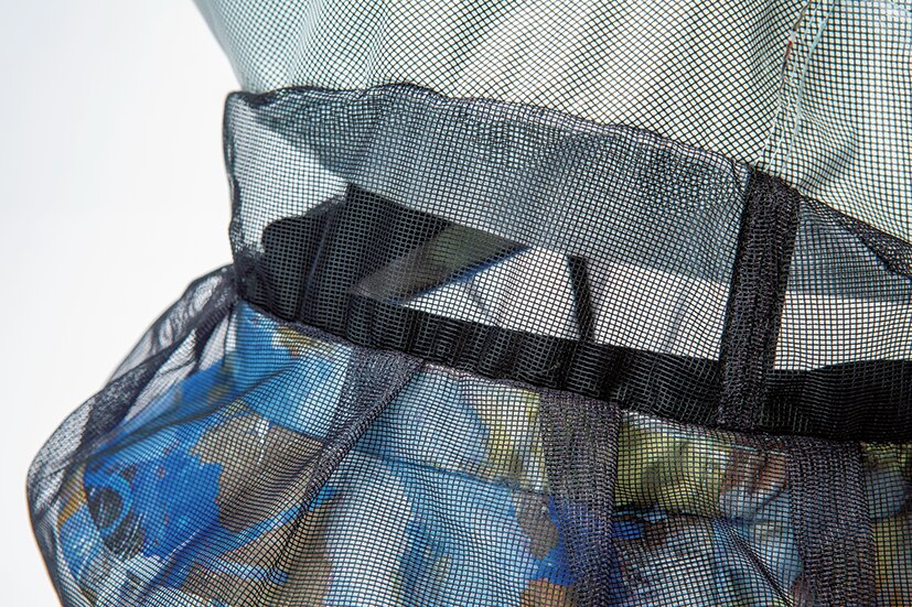 頭の部分にメッシュ生地が収納されており、視界を確保しつつ顔まわりをカバーする虫除けとして使えるバケットハット。毛バリを使って絵画を描くベン・ミラーとサウス2 ウェスト8のコラボモデル。1 万8700 円(サウス2 ウエスト8 TEL011-280-7577)
