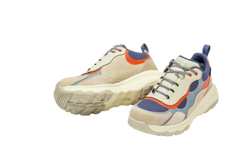 軽量でクッション性のあるソール、防水素材使用など機能的には山歩き用だが、脱ぎ履きしやすいローカットだから日常使いにも最適。再生ポリエステルに合成皮革と防水皮革を重ねたデザインも個性的。2万1450円(デッカーズジャパン TEL0120-710-844)