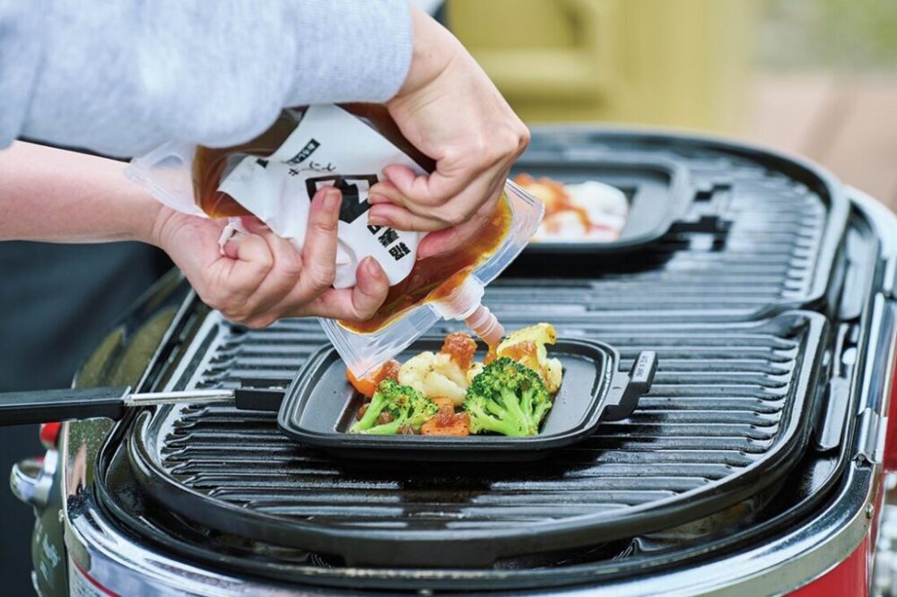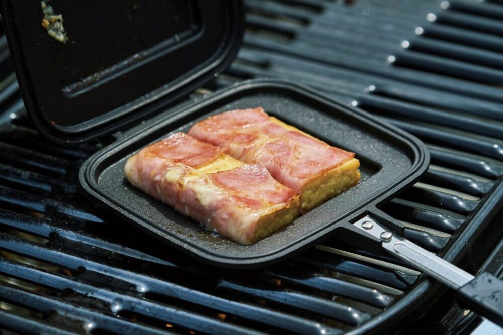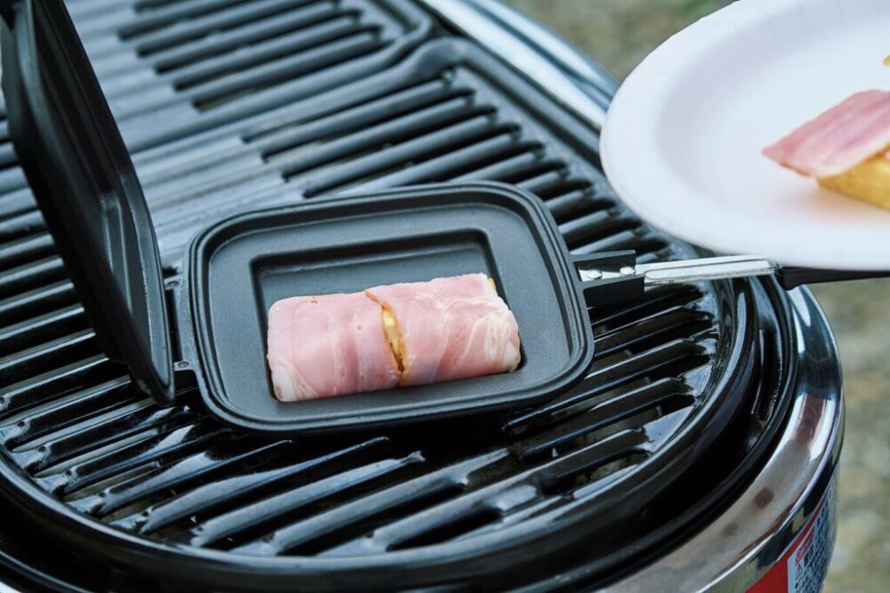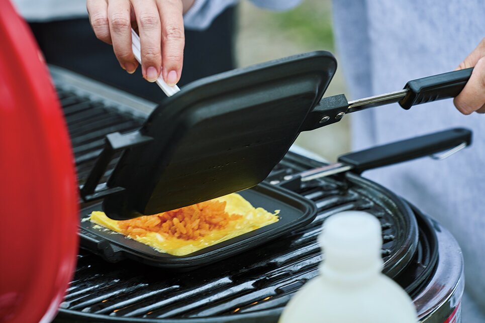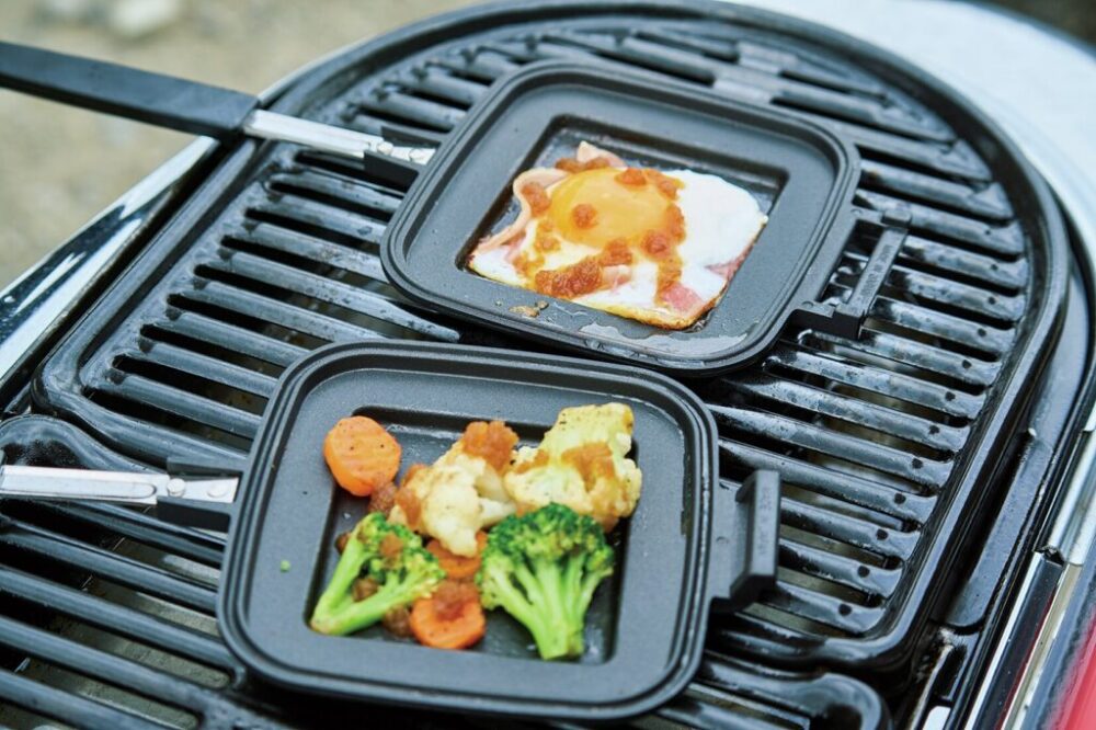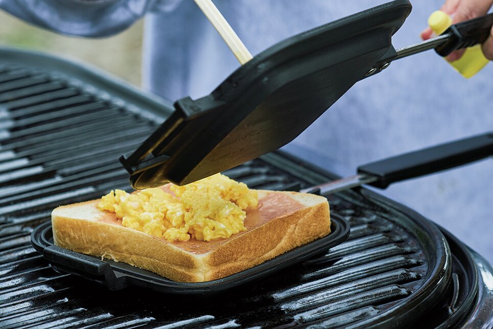 これぞ正しい朝食メニュー。いつも食べている朝食を外でも食べたいよね。ホットサンドメーカーをセパレートすれば、同時にベーコンエッグと焼き野菜が作れちゃう。仕上げはやっぱりステーキソースでしょ。