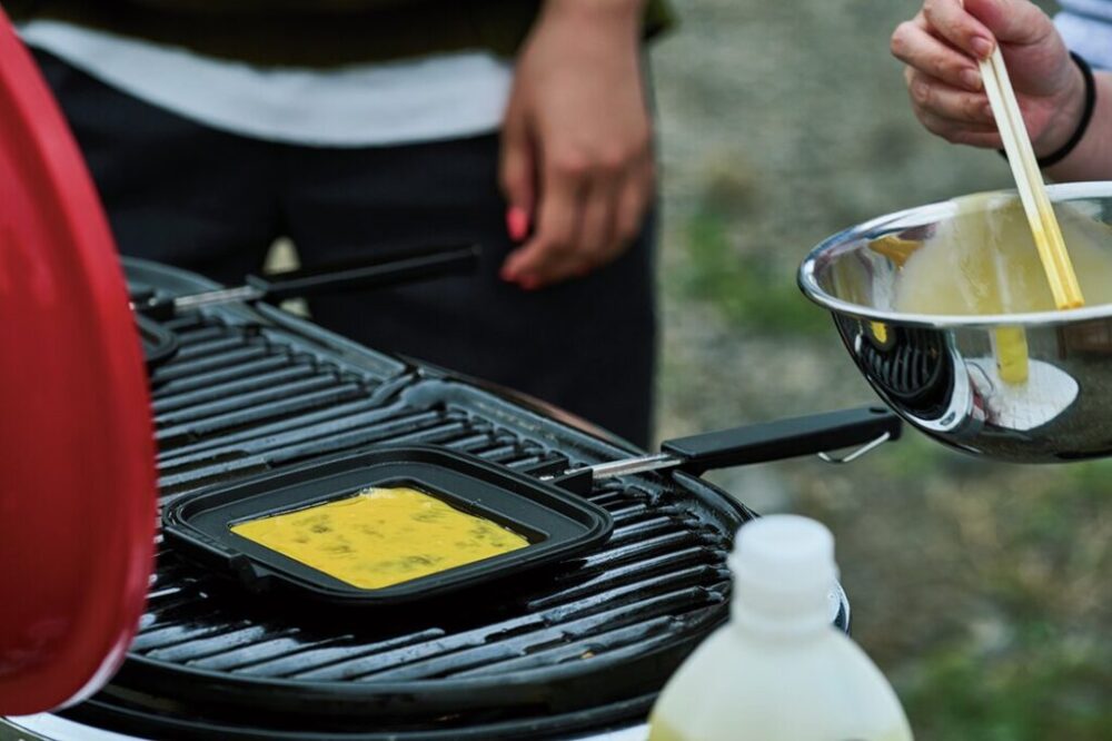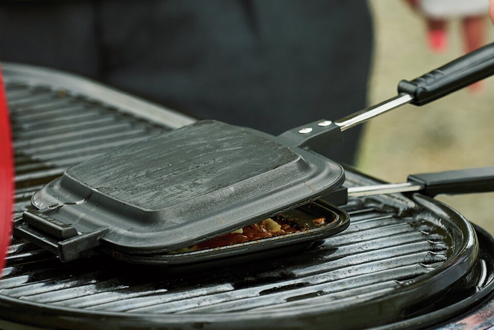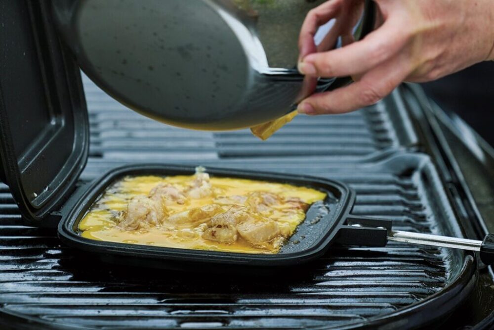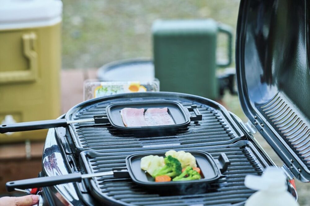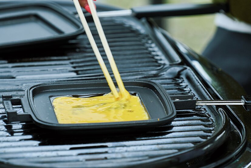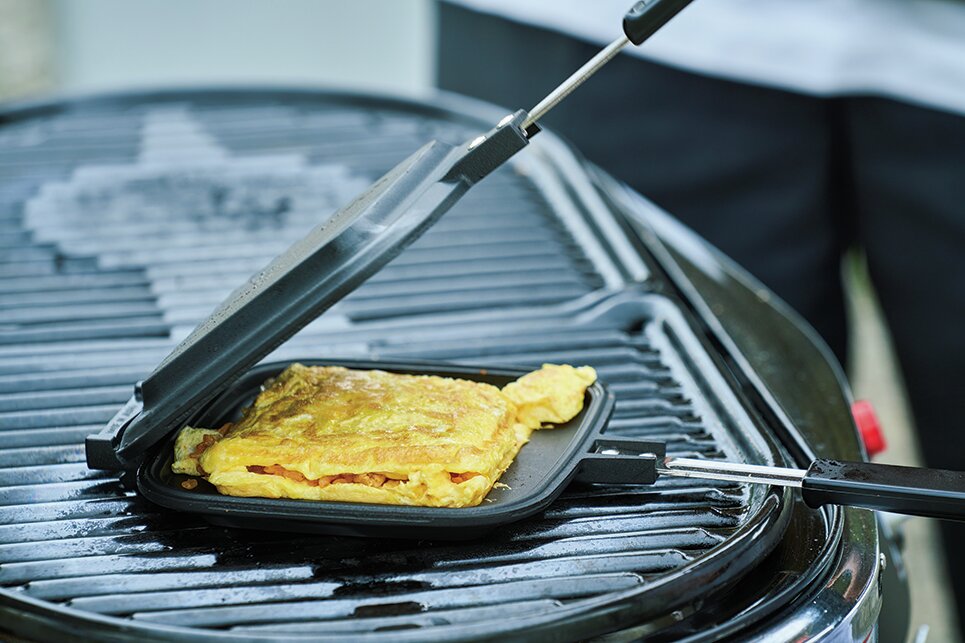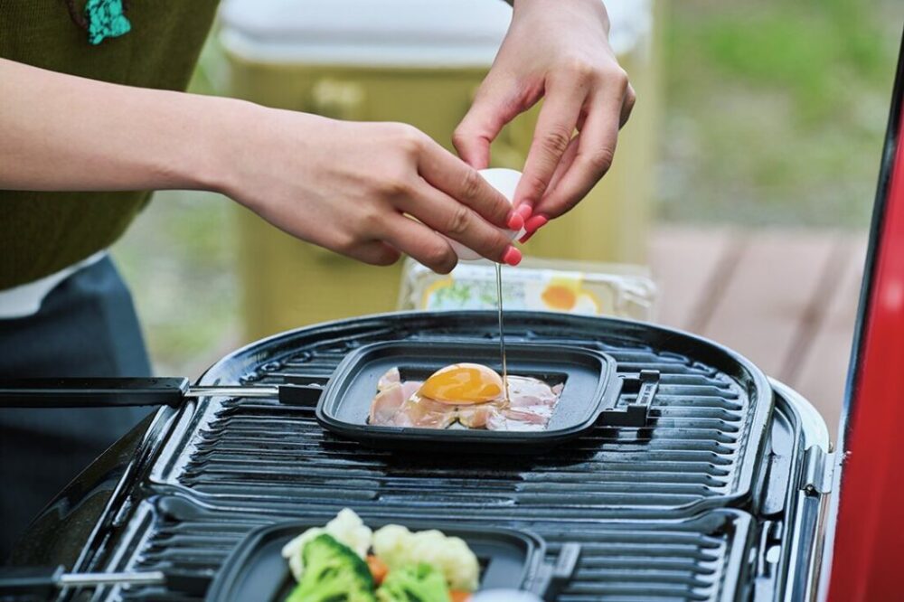 これぞ正しい朝食メニュー。いつも食べている朝食を外でも食べたいよね。ホットサンドメーカーをセパレートすれば、同時にベーコンエッグと焼き野菜が作れちゃう。仕上げはやっぱりステーキソースでしょ。