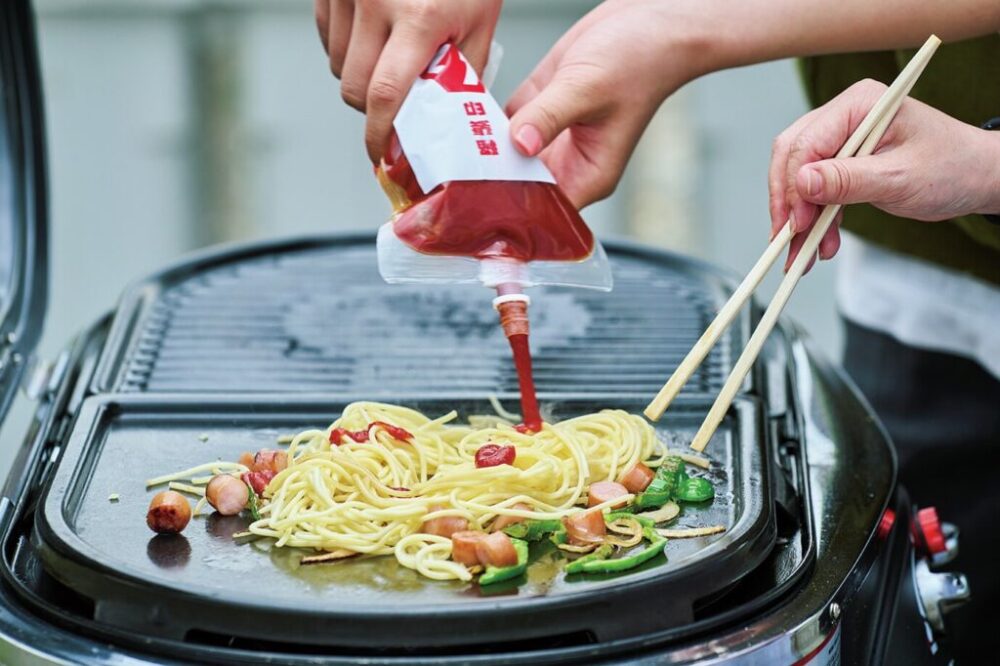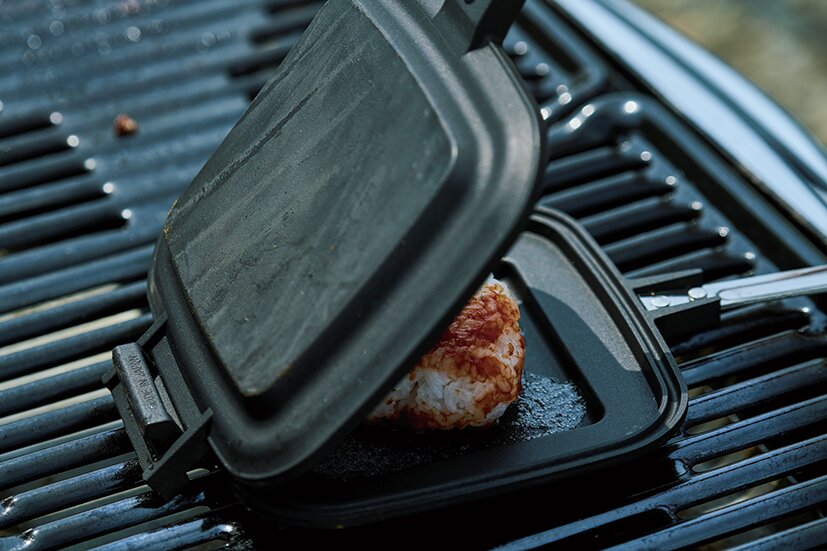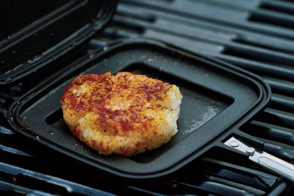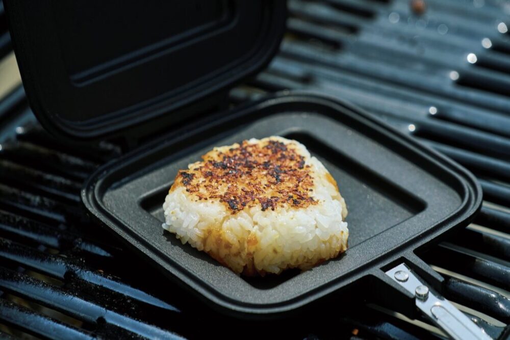 外で食べる焼きおにぎりも最高だ。今回は、ステーキソースバージョンとケチャップバージョンの焼きおにぎりを作ってみた。ケチャップバージョンはバターで焼くと、ケチャップライス風になって美味しいぞ。
