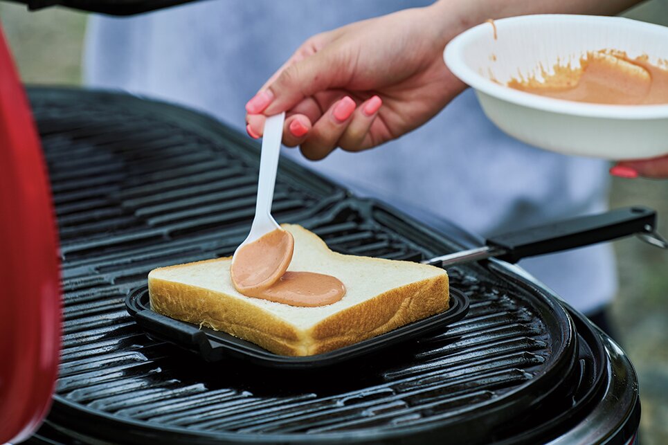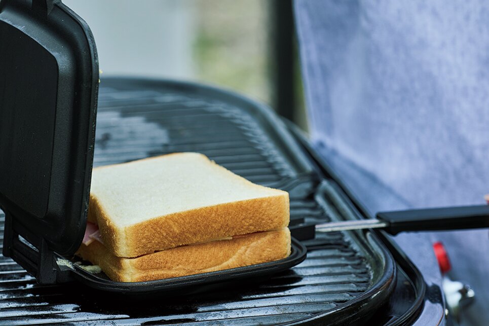 キャンプの朝食の大定番といえばホットサンド。好きな具材をいろいろ入れられて、バリエーションが作れるのが魅力でもある。今回はオーロラソースのホットサンドを作ってみた。追いオーロラソースは必至です。