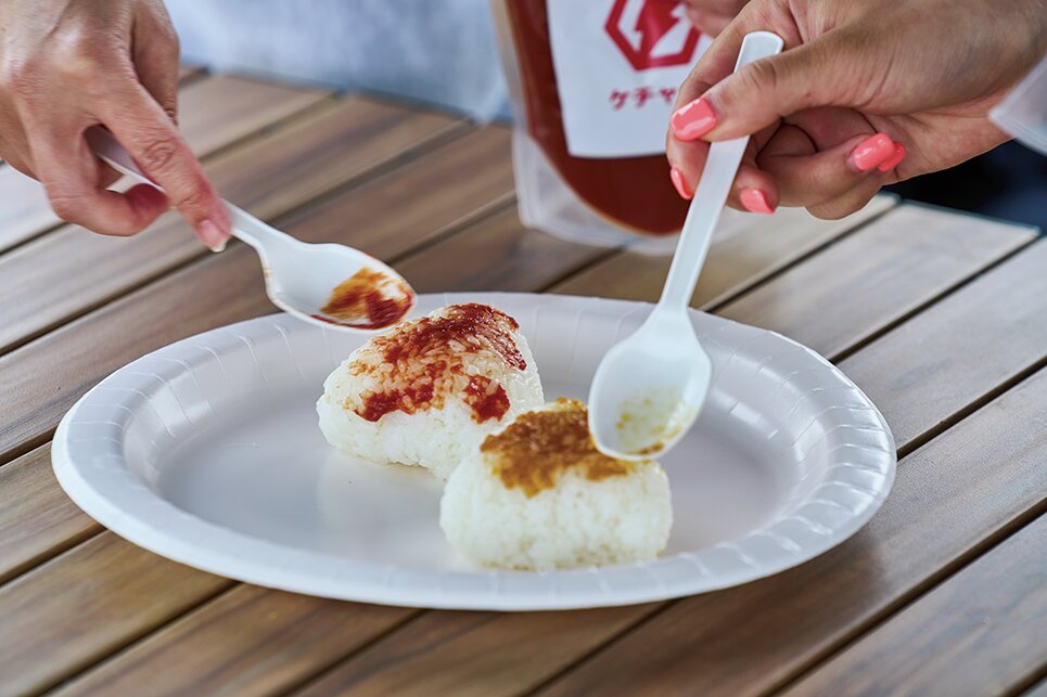10.焼きおにぎり( ステーキソース&ケチャップ)