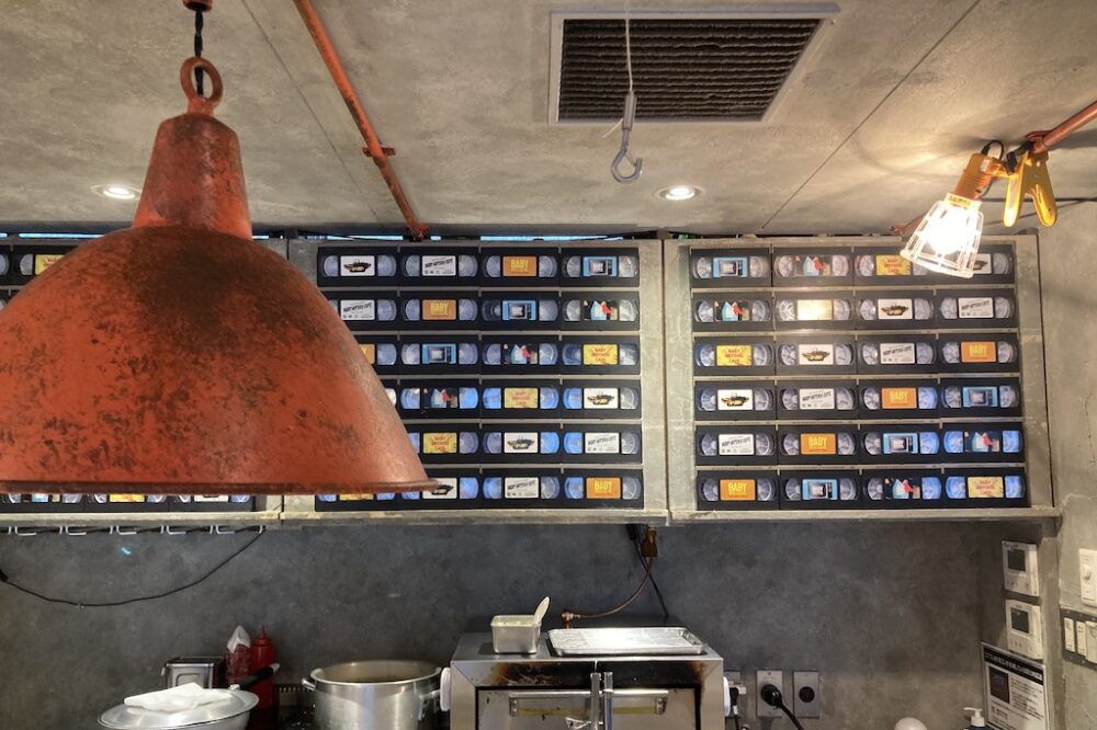 今ではほとんど見ることがなくなったブラウン管のテレビやVHSのビデオテープなんかをインテリアとして活用し、おじさん世代には「懐かしい」、若者世代には「何これ? おもしろい」という空間に仕上がっている。