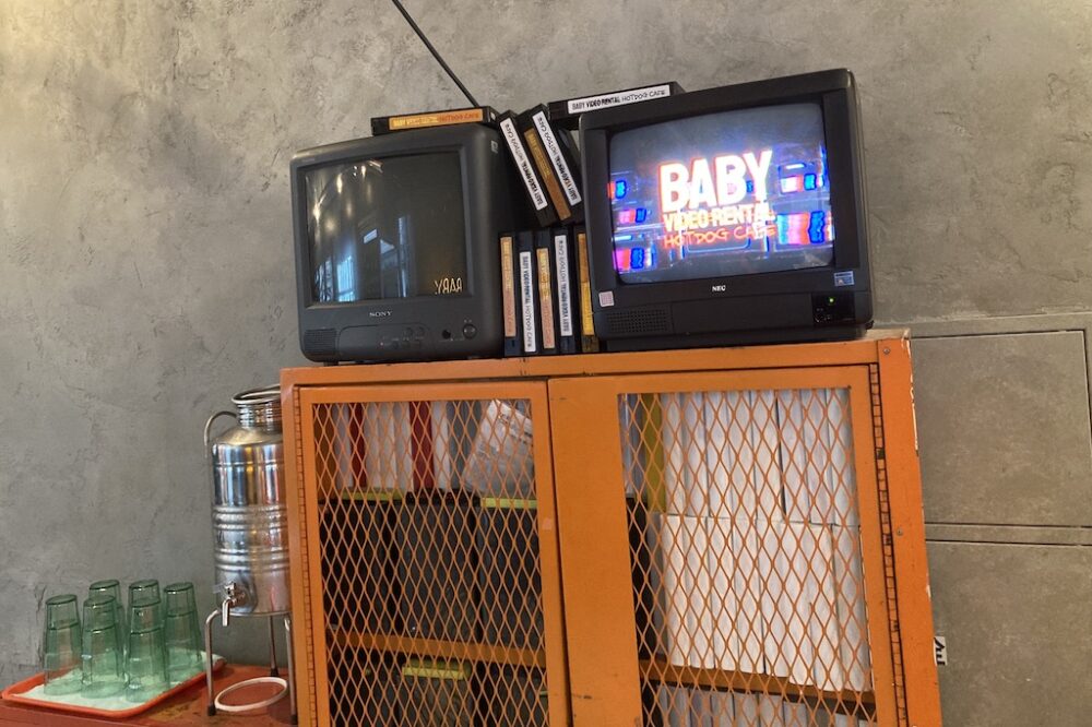 店内の雰囲気がオールドタイマーなのは、アメリカでレンタルビデオ店をやっていたおっさんが、ネット配信で商売が厳しくなって、大好きなホットドッグを同じ場所でメインビジネスにしたというストーリーを空間に反映させたもの。