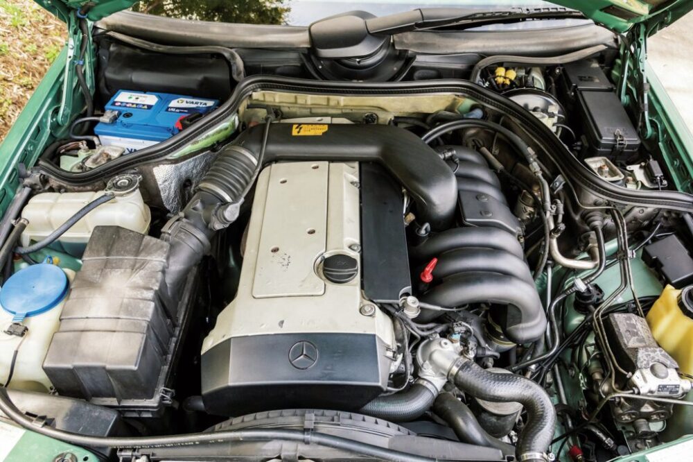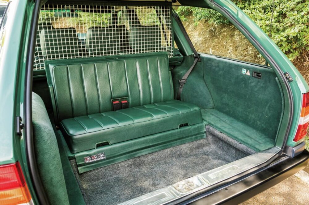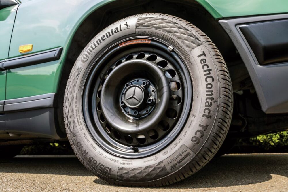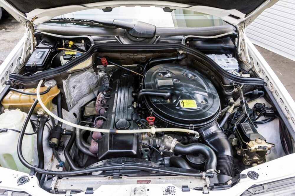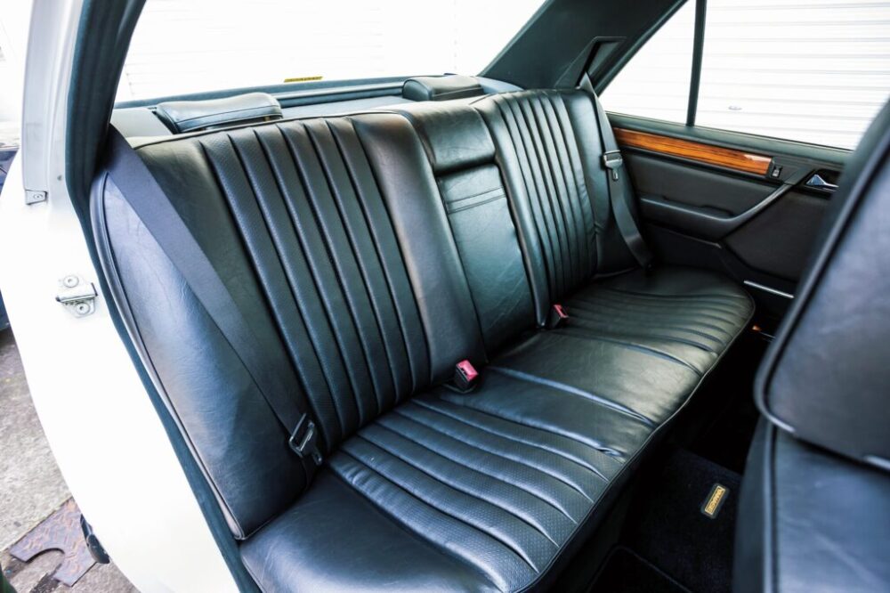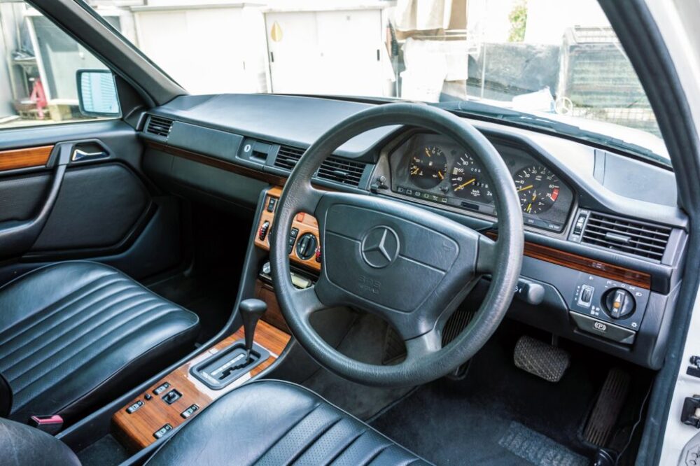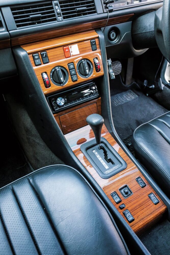 続けて紹介するのは、’92年式の260Eセダンだ。こちらも他の車両と同じくサッコプレートを外して初期モデルを再現したクラシックライン同様の外装となっている。これに合わせて足周りはホイールもあえてのスチールホイール&ハブキャップというスタイル。セダンも程度の良い個体は見なくなっただけに狙い目のモデルだといえる。