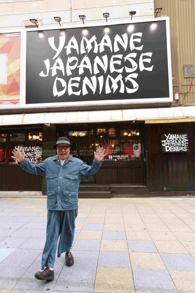 2023年3月、ジャパンデニム界のパイオニアであり、カリスマとしても知られる山根英彦氏が手掛けるショップ、ヤマネシンセカイがオープンした。場所は大阪・新世界にある朝日劇場の1階。劇場の看板同様、並べて掲げられた大きな看板が目印だ。