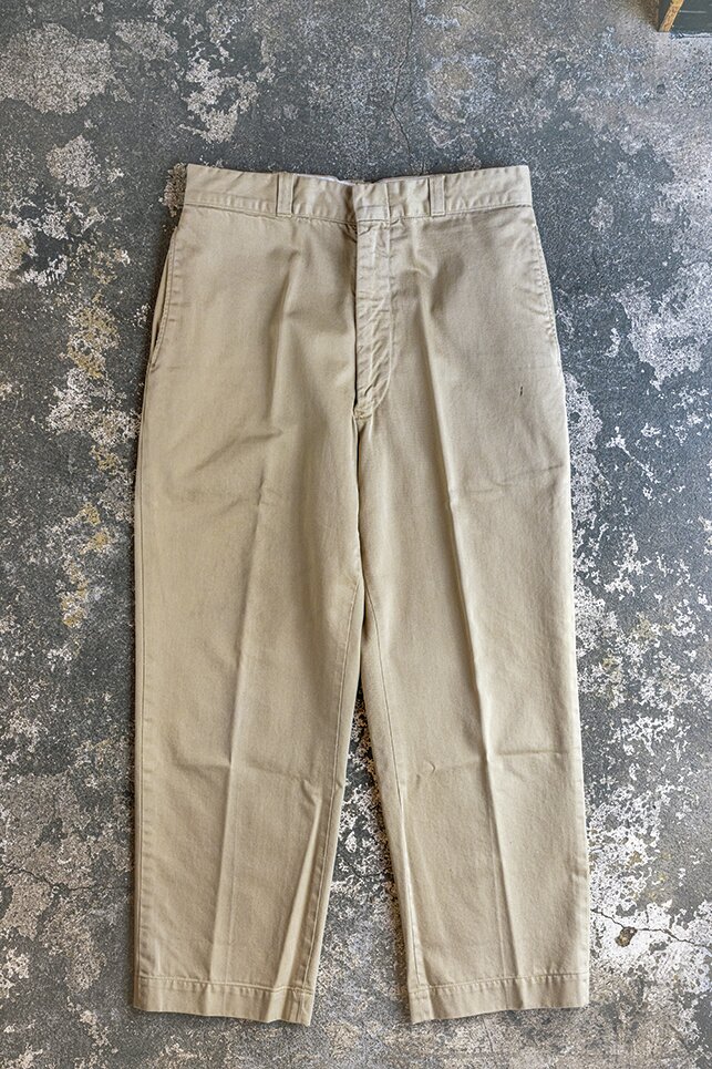 2インプリーツの今っぽく穿けるワイドシルエットが特徴で、ここ数年枯渇状態となっているM-52チノショーツ。官給品では希少なインタックの入りで、綾織り特有のハリやコシもある厚めの生地も魅力的。バケットハットにボタンシャツ、ビッグシルエットTシャツなどがベストマッチ。1万780円