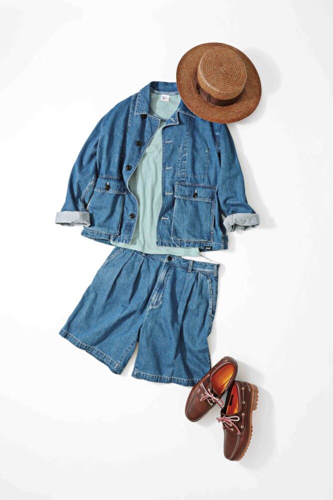 抜け間あるスタイルが楽しめるデニムショーツとカバーオール。