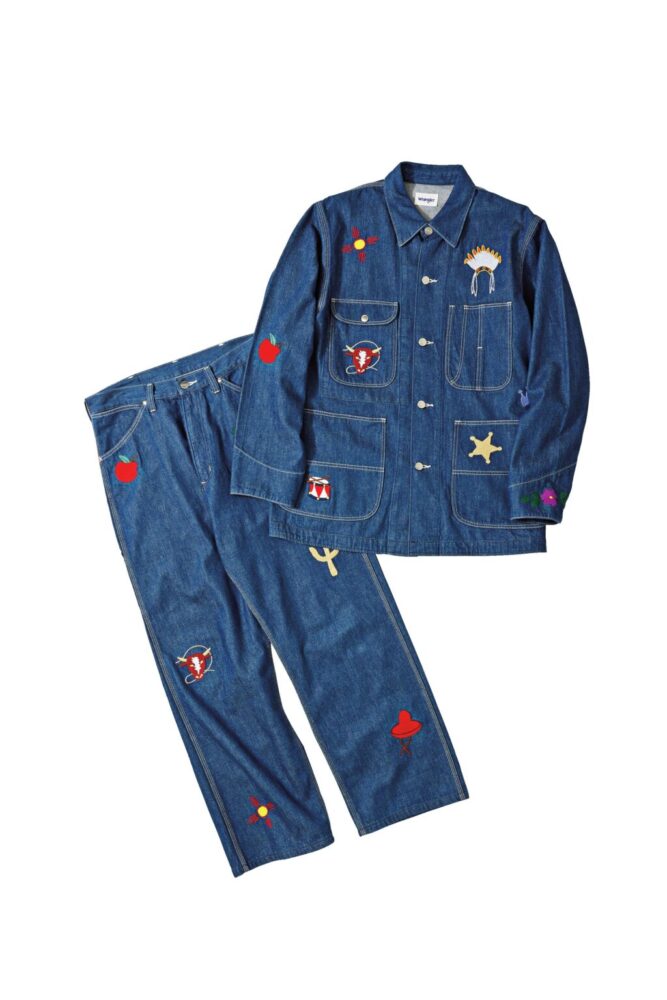 チョアジャケット(カバーオール)とペインターパンツのセットアップ。スーベニアを彷彿させるような彩豊な刺繍を全面に施しているので、一捻り効いた着こなしに最適。ジャケット4万9940円、パンツ3万9930円(エドウイン・カスタマーサービス TEL0120-008-503)