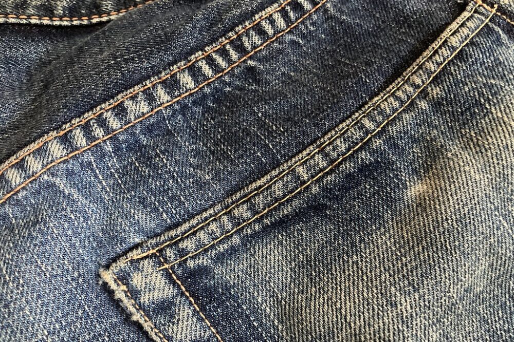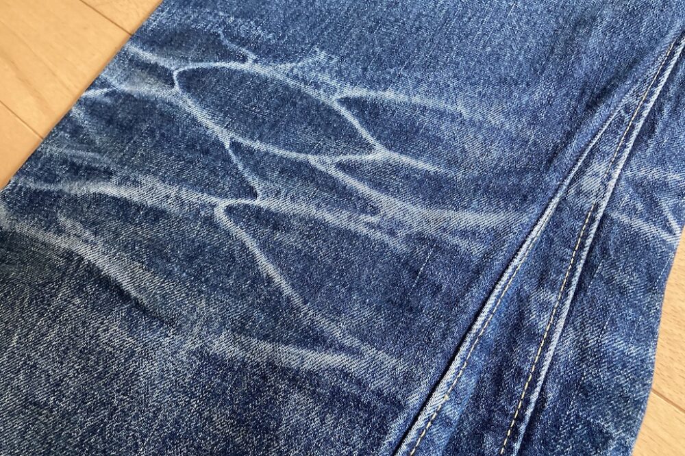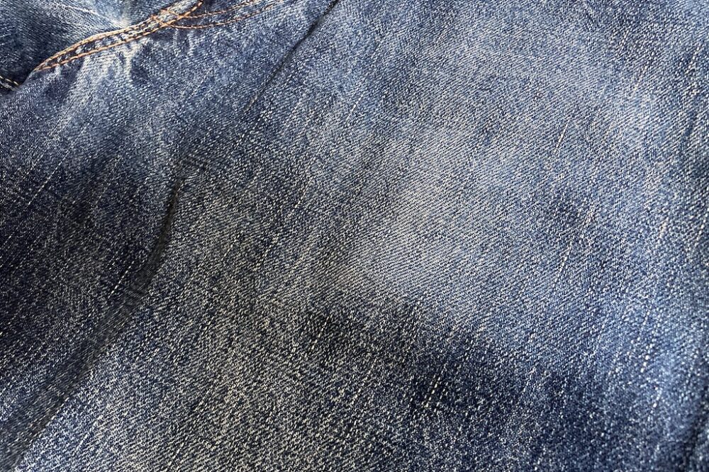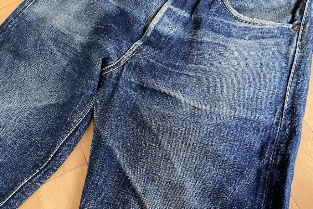 本来、衣類の色落ちは工業製品としてはNGだけど、ことジーンズにおいてはインディゴに染められた糸で織られた生地が洗濯や着用によって色落ちしたり生地が洗濯によって縮んだりすることが特徴。