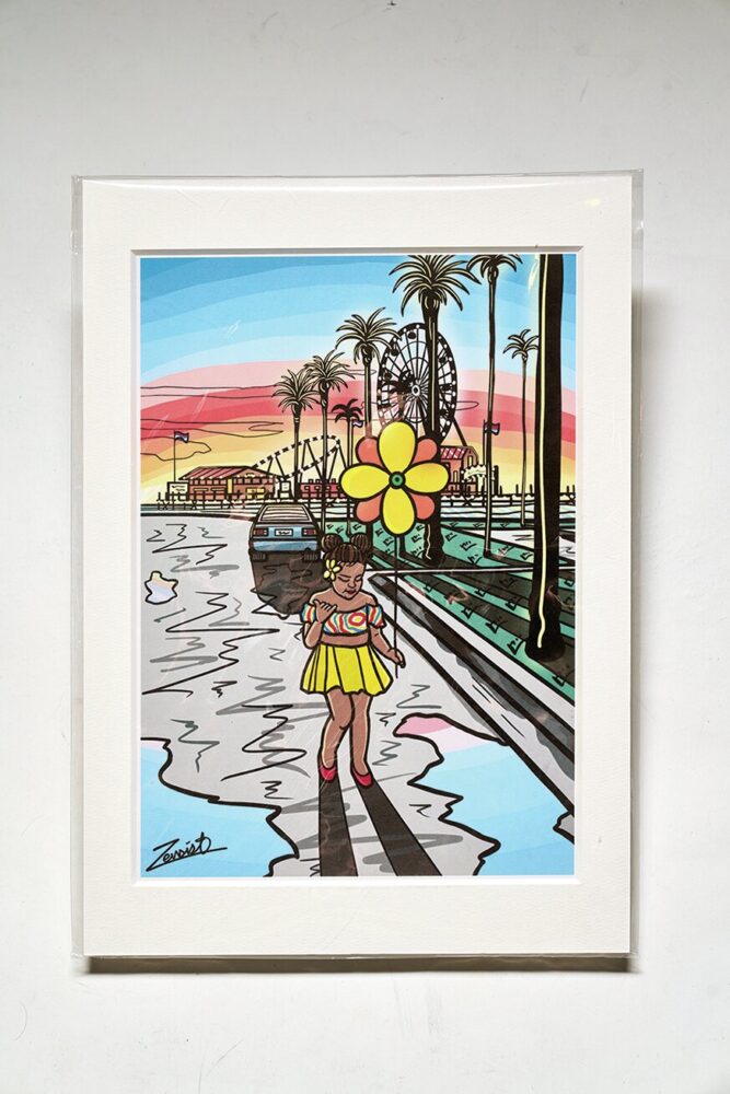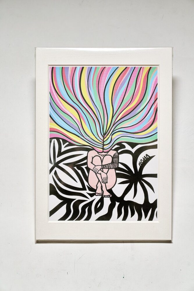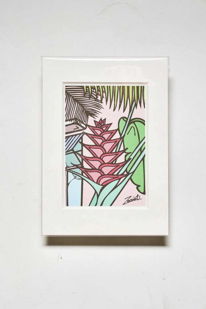 ハワイで見かけた色や風景を落とし込んだアートイラストたち。これもすべて齋藤さんが描いたものだ。カフェで販売も。