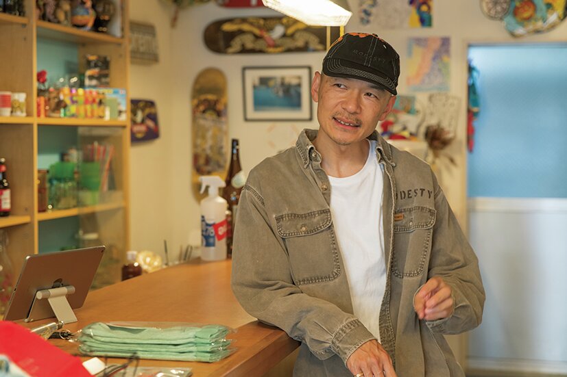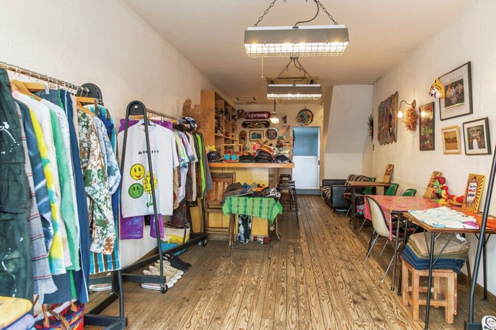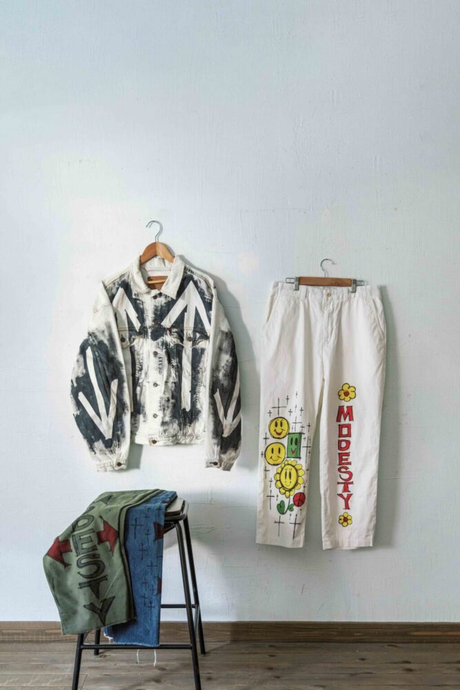 三軒茶屋にフラッグシップストアを構えるモデスティインダストリー。インポートショップやドメスティックブランドのスタッフを務めていたロンさんと、美大のテキスタイル専攻で染織を学んだ実弟の2人で手掛けている。そのスタンスは独特で、自分たちの気に入った古着の欧米のクロージングに、1点ずつ日本の伝統的な染色技法で新たな息吹を吹き込んでいるのが特徴だ。