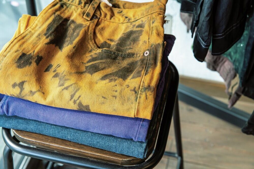 日本において染めは、襤褸と同じようにひとつのものを長く使うためにも用いられているアップサイクルでもありました。アメリカの古着でも長く使うためにリペアやリメイク、カスタムが施された個体がありますが、そんな感覚を日本の伝統的な染色技法で表現しています。
