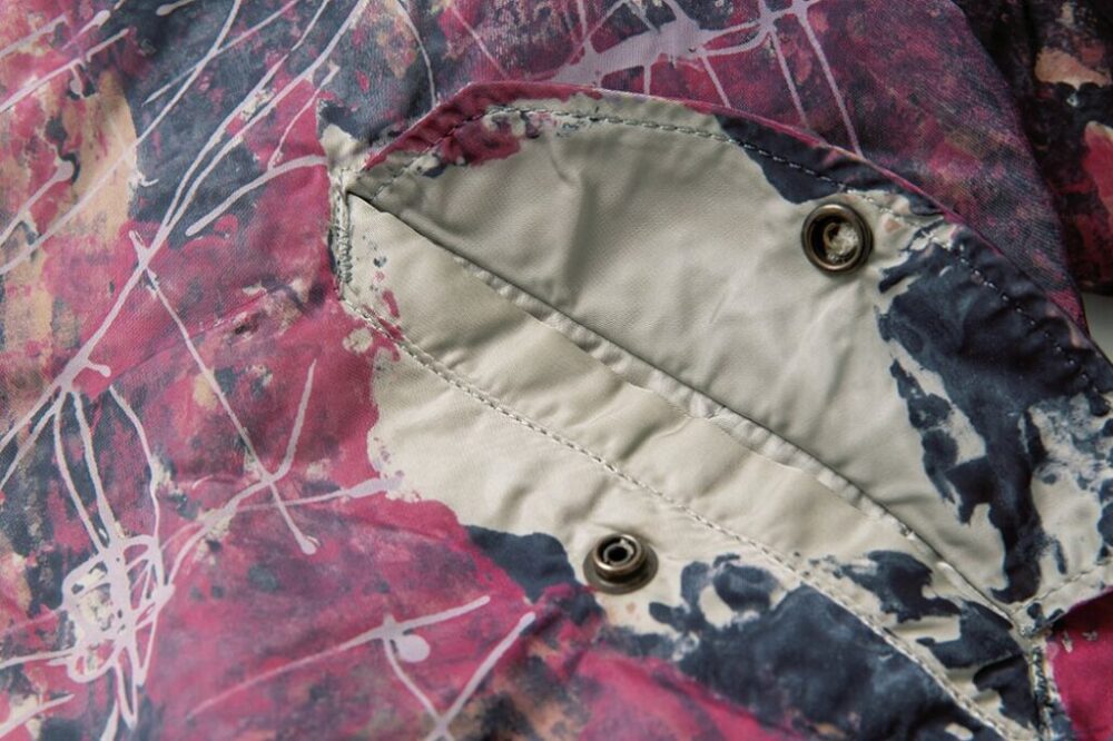 まるでどこかの軍隊で使われていそうな完成度の高いカモフラ柄は、なんと染めで構築。ベースはリップストップ生地を使った無地。2万2000円