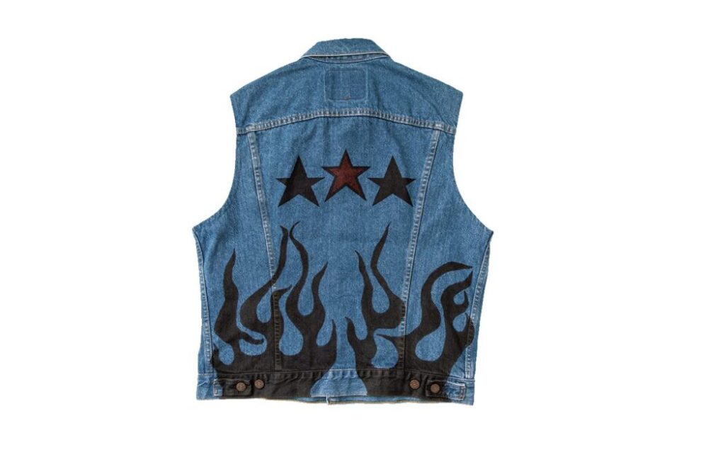 メイドインUSAのリーバイスのGジャンをカットオフし、染めでファイヤーパターンを表現。星のアートワークも絶妙だ。2万2000円