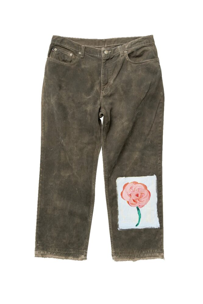ポロラルフローレンのジーンズをベースに、一度染めてからバラのアートワークを施した力作。穿かない時は、飾っておきたいくらいのクオリティ。2万2000円
