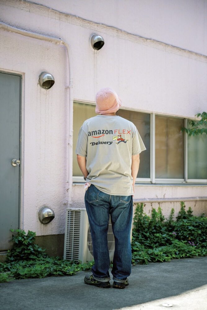主役は深みのあるインディゴが抜群の存在感を放つ1960sのヴィンテージ Levi’s501 “66 Big E”。そのためトップスはあえてレギュラーのTシャツをセレクト。「ヴィンテージにヴィンテージを合わせる気合の入った感じより、脱力感のある着こなしが気分です!」 とのこと。