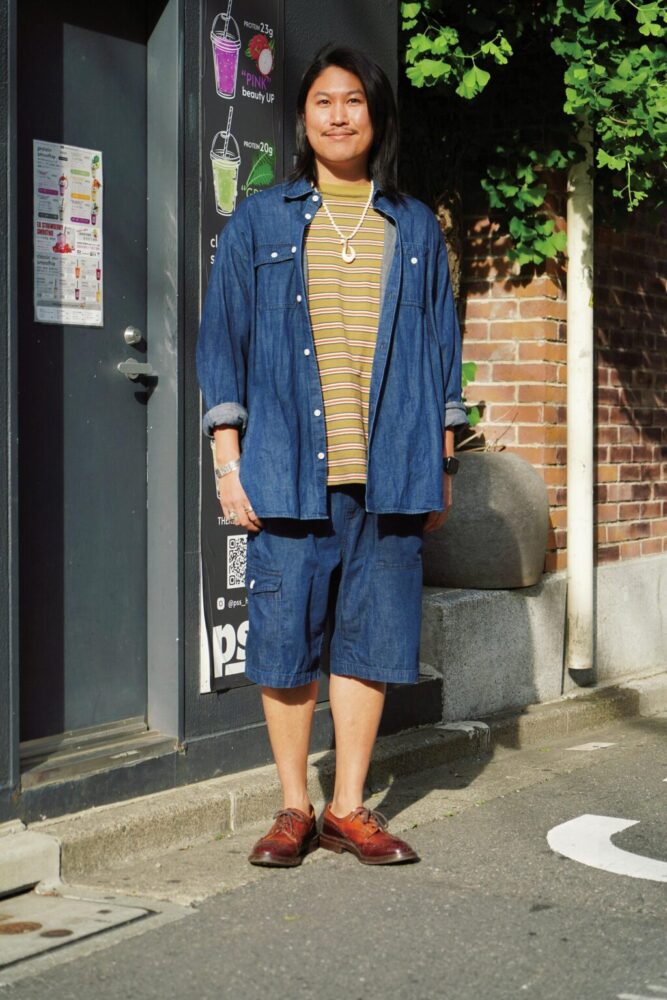 4.個性あるショートパンツがコーディネイトのアクセント。|「FDMTL」デザイナー・津吉学さん