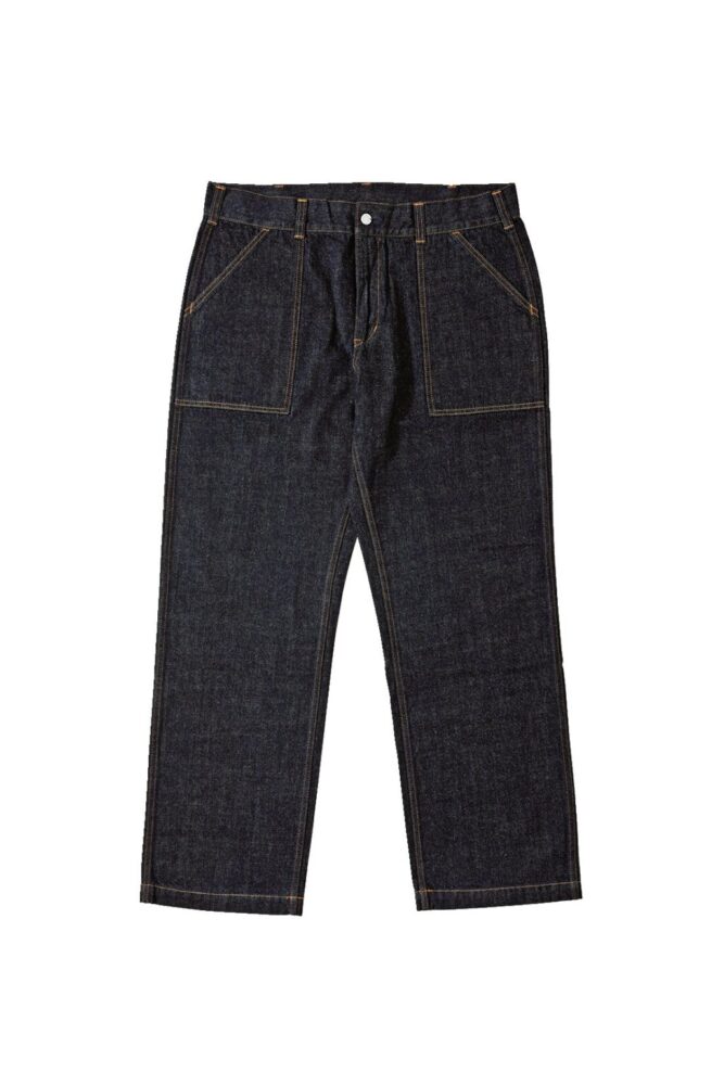 太めのワタリと裾幅、深い股上とワークウエアらしい趣を持つペインターパンツ。13.5ozのオリジナルデニム生地はインディゴにグレーの緯糸を打ち込むことで深みのある色合いに仕上がっている。2万9700円(トロフィージェネラルストア TEL03-6805-1348)
