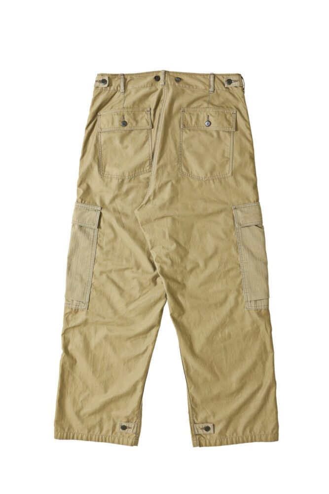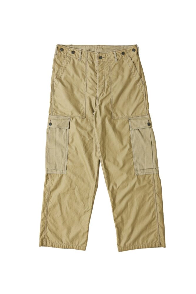 米軍のM-47ベイカーパンツと米軍M-43カーゴパンツのいいとこをミックスしたデザイン。素材にはラフな質感が味わい深いヘリンボーンで、初期のSZではなく中後期のシングルを意図的にセレクト。3万8500円(アウターリミッツ TEL03-5413-6957)