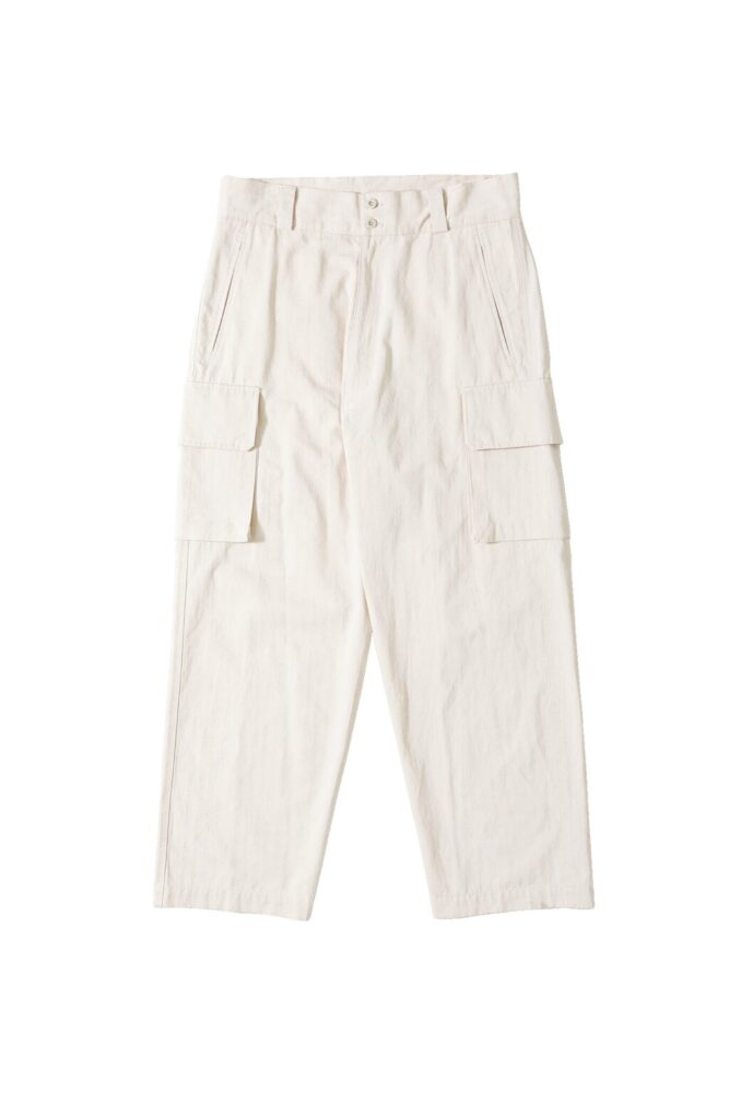 ヴィンテージのM-47をベースに着やすいサイジングにアレンジしたカーゴパンツ。オールシーズン着用できるミリタリーツイル生地にストーンバイウォッシュ加工でアタリを出すことで綺麗すぎなずラフに穿ける。1万5400円(サンマリノ TEL03-3634-8411)