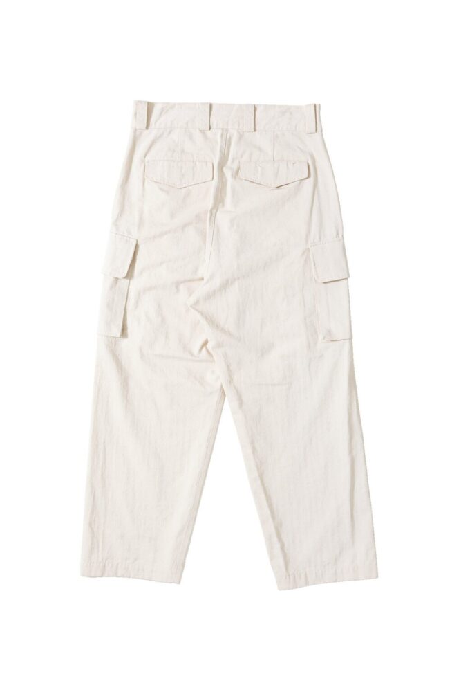 オリジナルデザインで仕立てられたカーゴパンツ。膝部分に可動をよくするめたのタックや裾調整コード、大容量のサイドポケットなど、機能性を備えたディテール満載。3万800円(フラットヘッド・ネクスト TEL026-275-6666)