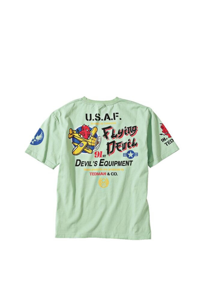 戦闘機を操り勇ましく戦場で活躍するテッドマンをプリント。今季リリースされた数多くのなかでもプリントの色数を最も多く使った力作。1枚でバッチリと個性を主張できる。5390円(エフ商会 TEL03-5383-0003)
