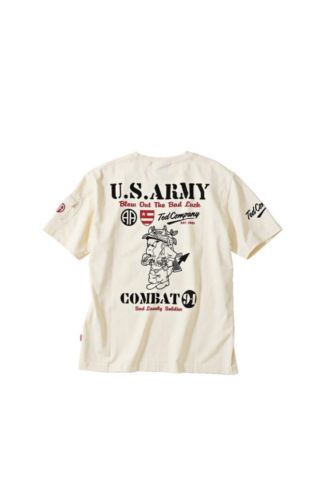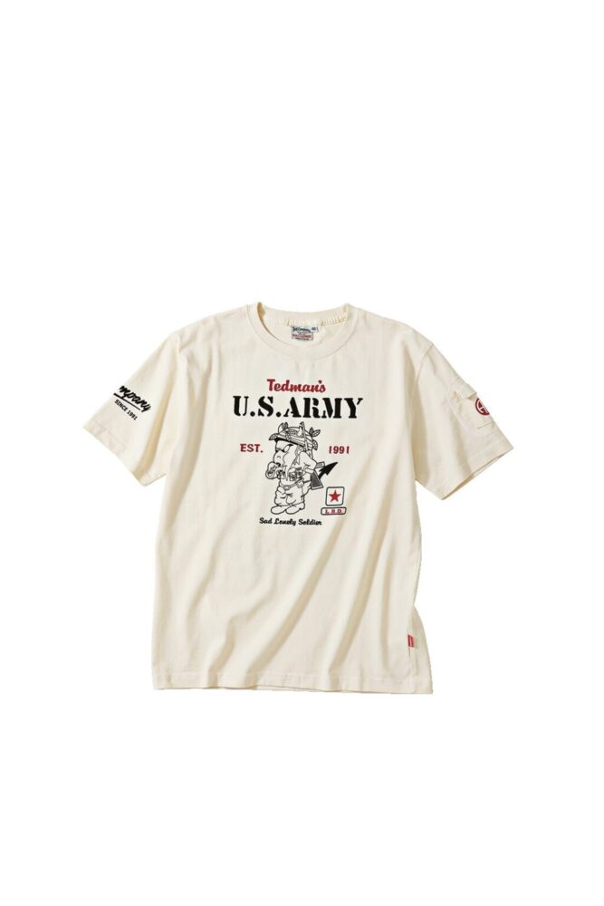 武装したテッドマンが少し寂しげに佇むミリタリー感満載のグラフィック。胸、背面、袖にもプリントが入るほか、左袖にはポケットも付く。5390円(エフ商会 TEL03-5383-0003)