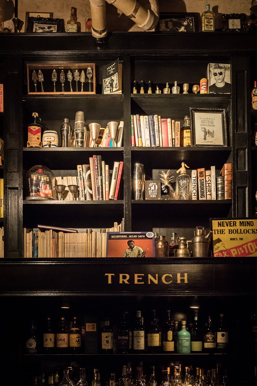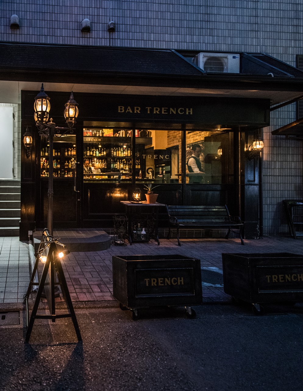 恵比寿駅からほど近い静かな路地裏に2010年オープンしたバー「トレンチ」。塹壕を意味する店名には、先に進むためにしばし敵の攻撃から身を潜め、英気を養うための場所であるという意味が込められている。