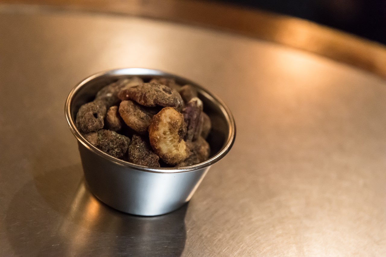 オールドファッションと同じアンゴスチュラ・ビターズでコーティングされた自家製ビターナッツ。 シナモン感がマッチ。