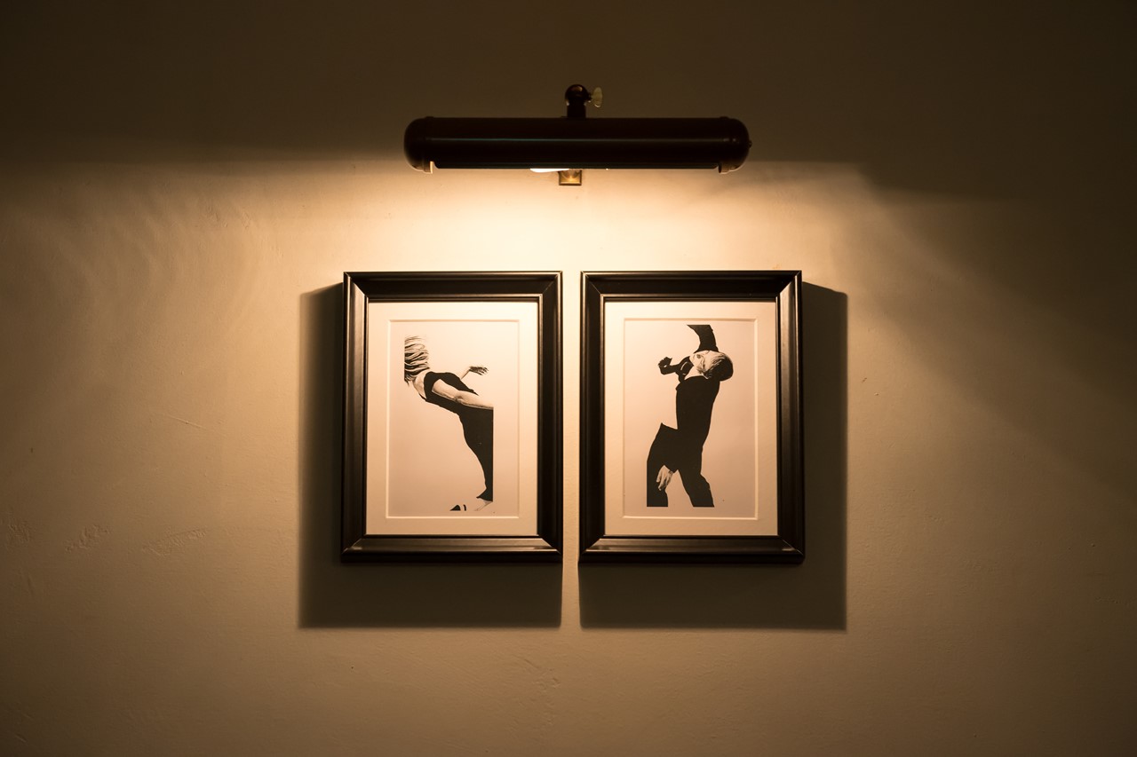 計算された照明で雰囲気あるロバート・ロンゴのアート作品も飾られている。