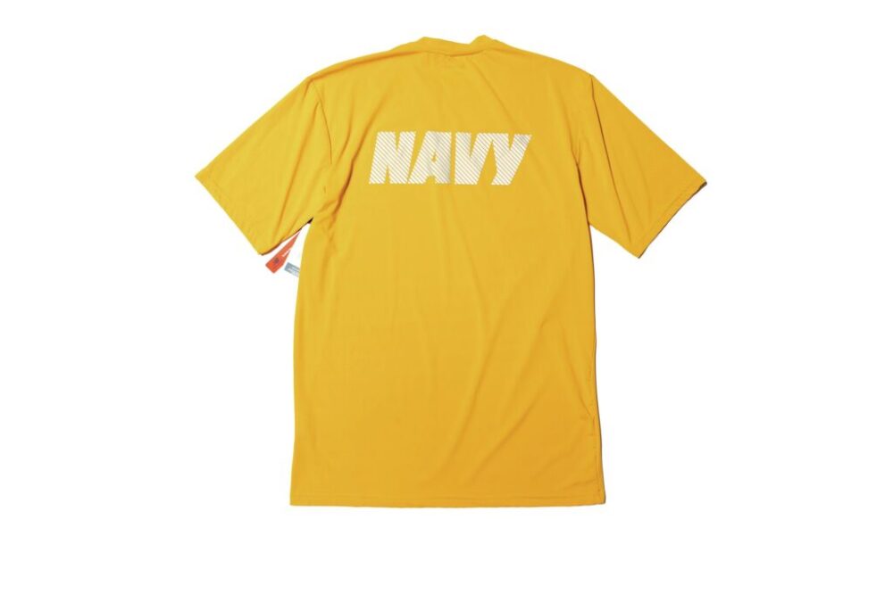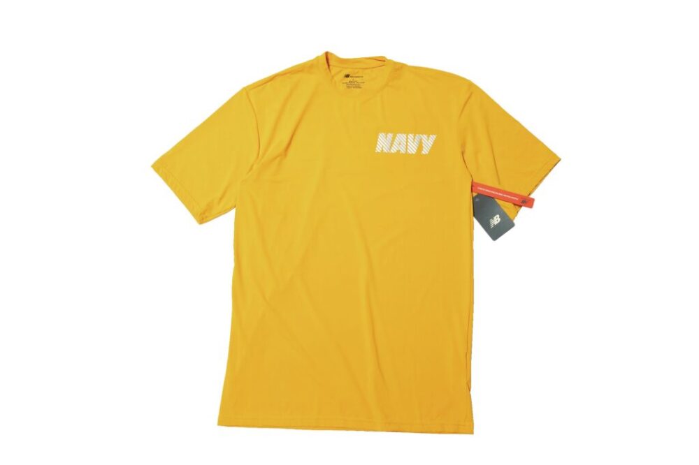 USネイビーのトレーニングウエアは、なんとニューバランス製。ポリエステルを使った速乾生地で、前後にネイビーのロゴがプリント。デッドストックである。¥2200