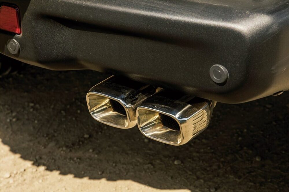 マフラーはELFORD製でスクエアテールの左右4本出し。